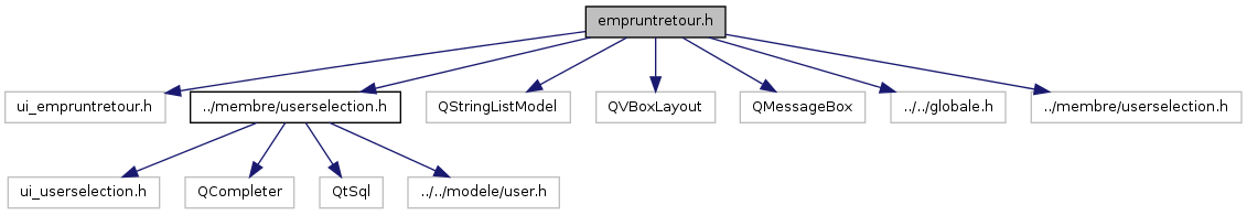 #include "ui_empruntretour.h"#include "../membre/userselection.h"#include <QStringListModel>#include <QVBoxLayout>#include <QMessageBox>#include "../../globale.h"#include "../membre/userselection.h"