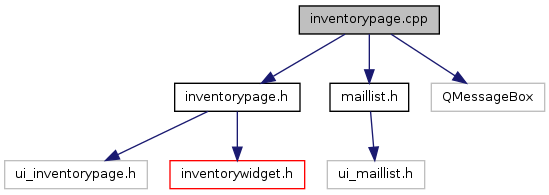 Graphe des dépendances par inclusion de inventorypage.cpp: