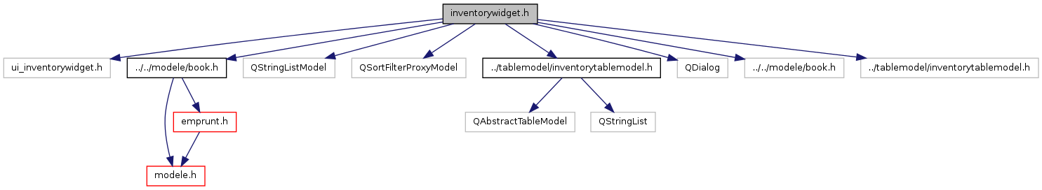 #include "ui_inventorywidget.h"#include "../../modele/book.h"#include <QStringListModel>#include <QSortFilterProxyModel>#include "../tablemodel/inventorytablemodel.h"#include <QDialog>#include "../../modele/book.h"#include "../tablemodel/inventorytablemodel.h"