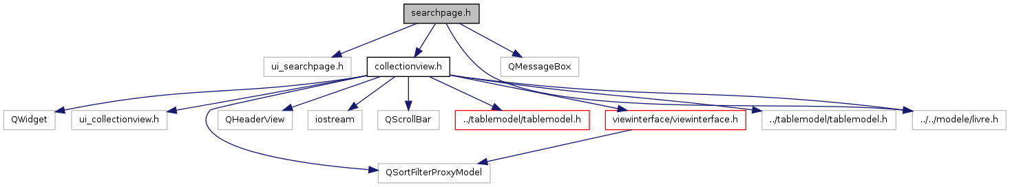 Graphe des dépendances par inclusion de searchpage.h:
